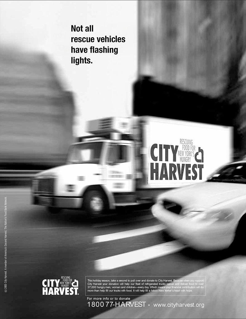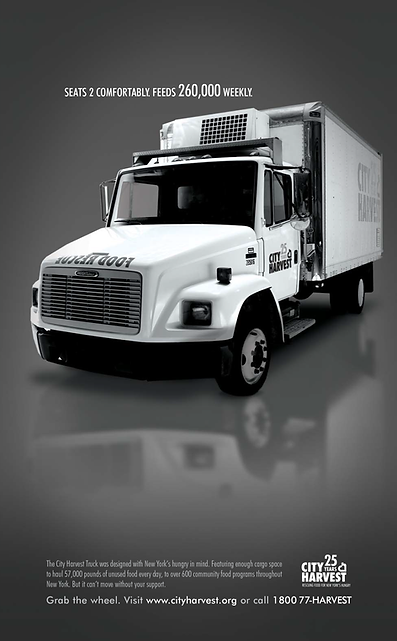 Our next campaign focused on appealing to individual New Yorkers, and around City Harvest’s unsung heroes—the City Harvest trucks they see driving around town. Through striking photography, real data and storytelling, we elevated these vehicles to icons of efficiency and compassion, much like car ads, but with a deeper purpose. The efficiency of their fleet and execution of their mission took center stage. Aimed at corporate donors, this campaign showcased the power behind every delivery.​