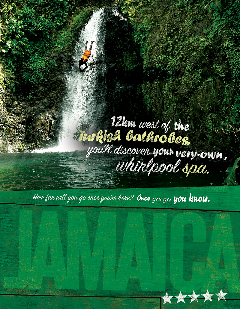 The campaign celebrated the Jamaica few tourists see—hidden waterfalls, lush mountain trails, colorful street markets, and authentic local experiences. Through bold photography and evocative headlines, we positioned the island as a destination for discovery, not just relaxation. Each print ad captured the energy and soul of Jamaica, inspiring travelers to go off the beaten path and uncover the stories waiting beyond the shoreline.